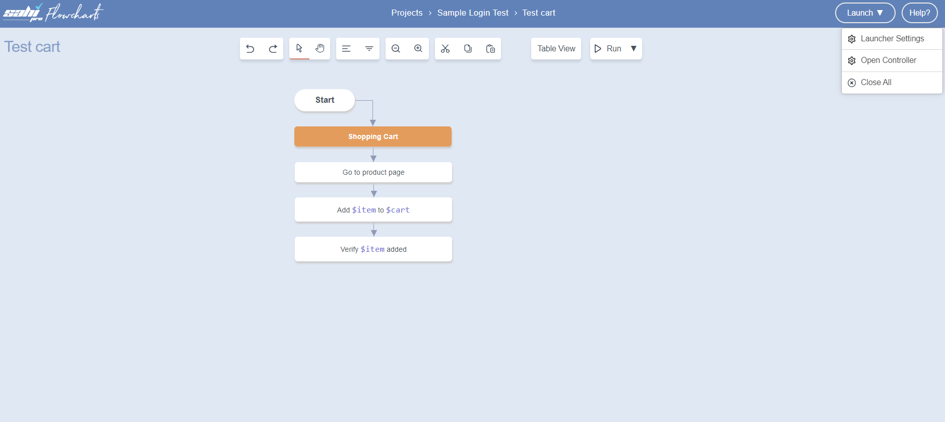 - On the Flowcharts window, click on the dropdown arrow next to Launch and then select