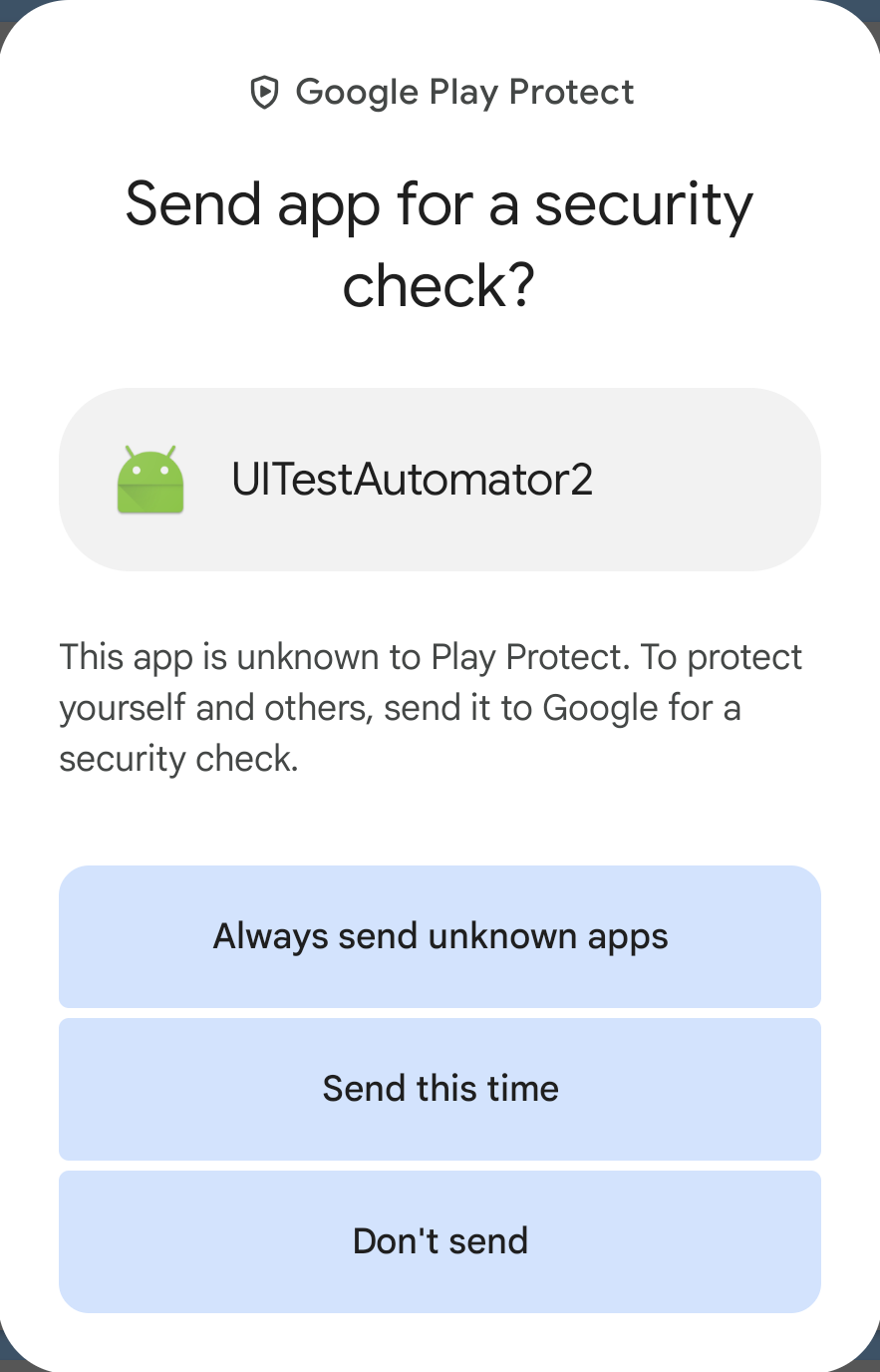 Google Play Protect can display the following warning.