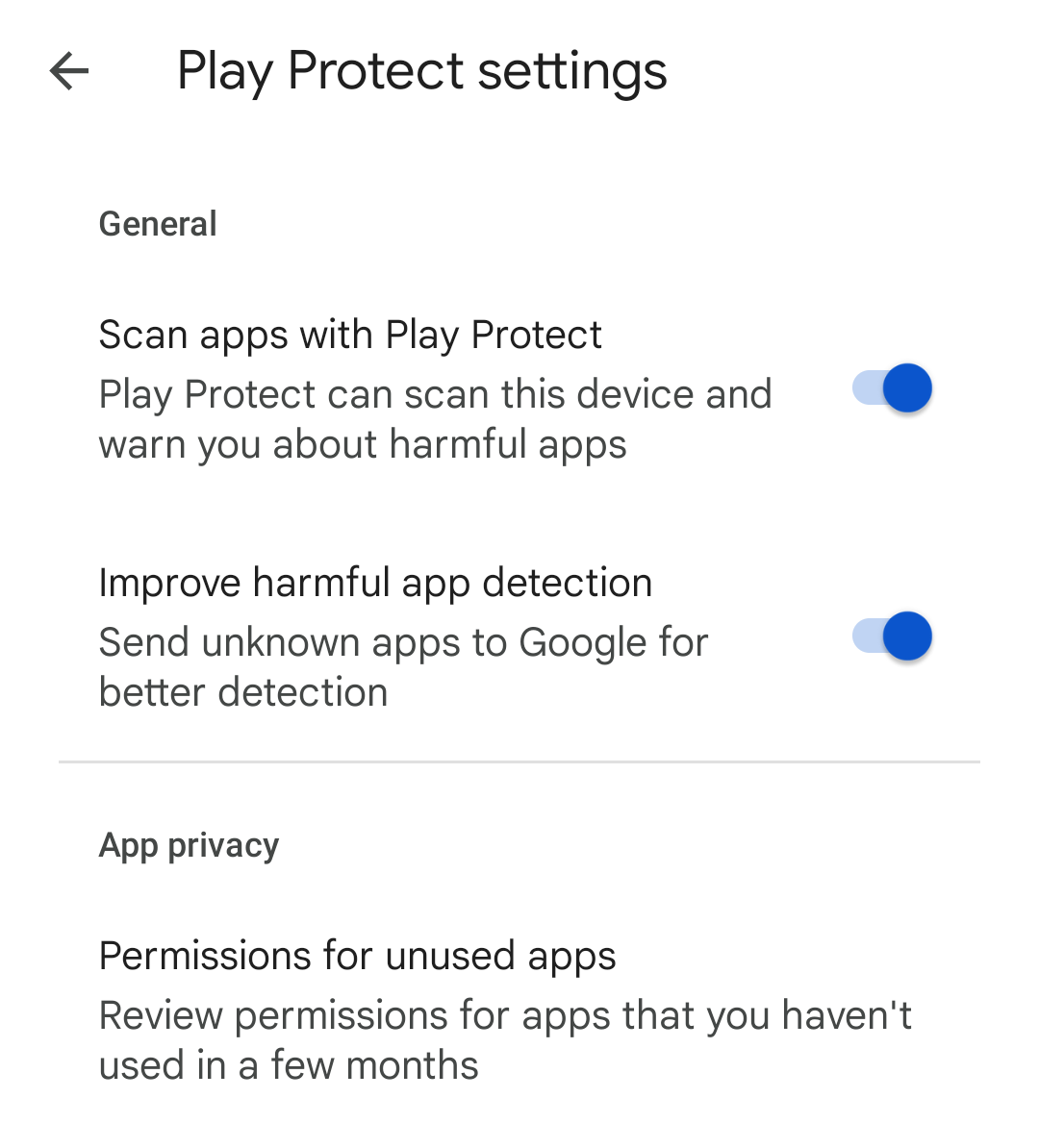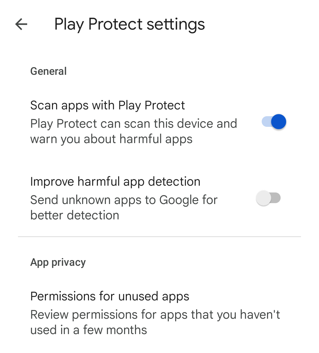 Improve harmful app detectionto switch itOFF. The screen now looks like this.