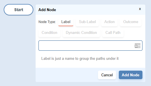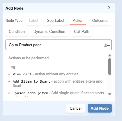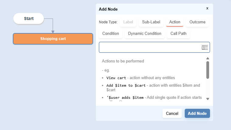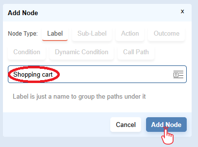 2. Type suitable name for the Path: Shopping Cart and Click on Add Node.