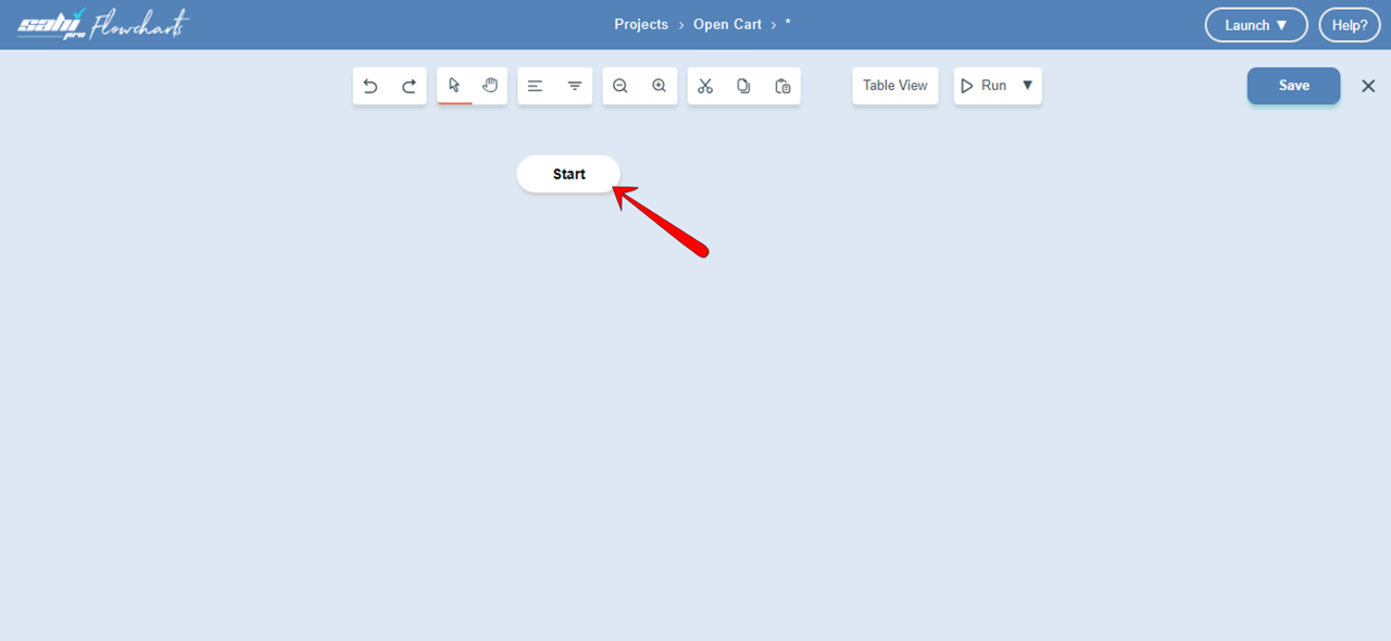 3. The flowchart window appears with a blank flowchart containing the Start node.