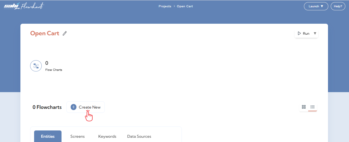 2. In list view flowchart page will display as shown in image below. Click on the Create New button to create a new flowchart.