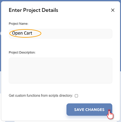 1. In the Project Details dialog box, provide a Project name :Open Cart and description (optional).
