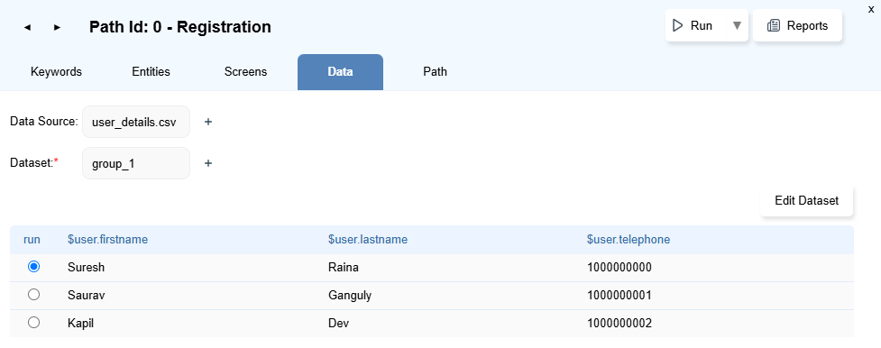 Datasets allow running the same path with multiple sets of data. This is useful for: