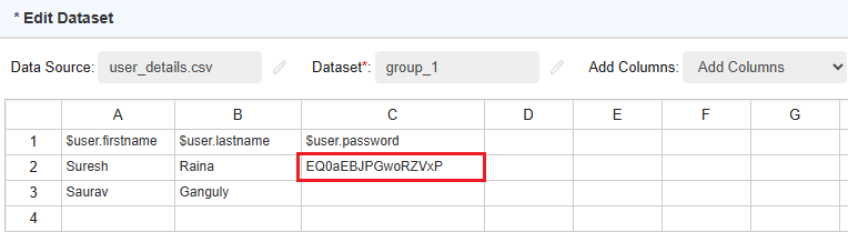 - Enter the plaintext password values in the cells beneath the corresponding attribute names.