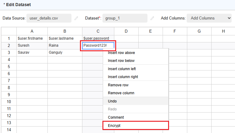 Encryptfrom the context menu. The plaintext password will be converted into an encrypted string.