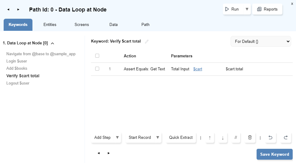 Add $booksandVerify $cart totalkeyword will be automated and extracted as follows: