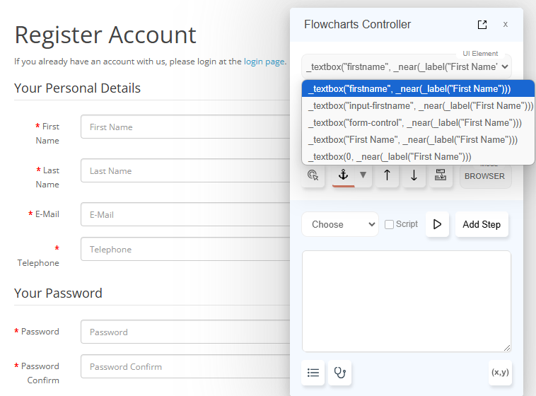 The Flowcharts Controller helps identify elements, interact with the Application Under Test and implement automation steps.