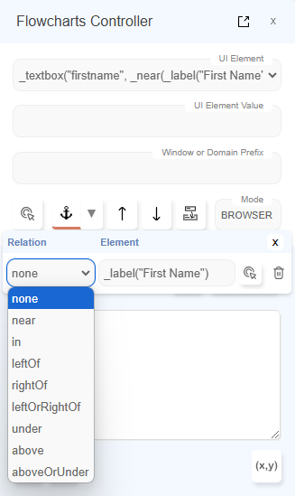 leftOf,rightOf,under,aboveetc., click the dropdown arrow next to theAnchorbutton. - To select multiple anchor elements, you can use additional anchor element identification mechanisms