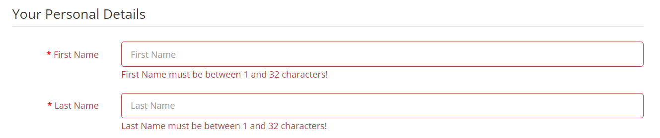 For Firstname, the message says "First Name must be between 1 and 32 characters!"As a tester, we need to ensure that the firstname field accepts the following:
