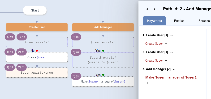 KeywordLogoutwill be added. - While traversing a path on the UI, if the logged in user changes automatically, that loggedin state can be specified in an Outcome node.