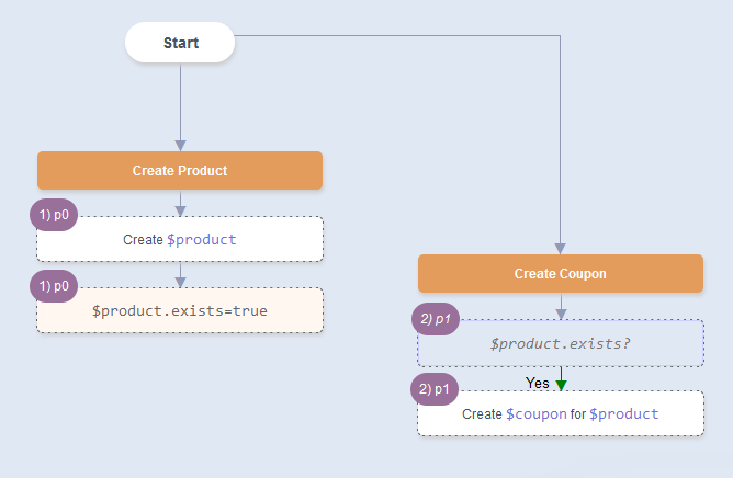 When Create Coupon is run, Create Product will run first and then Create Coupon will run.