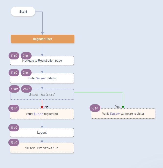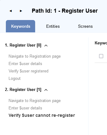 Eg. Adding an Action node with just@registrationwill add a Keyword ofNavigate from @base to @registration. - If the previous path was at
