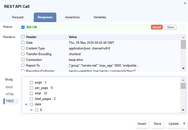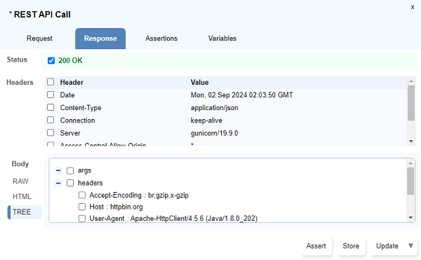 TREEunderBodytab. - Click on the checkboxes for the values that need to be asserted or stored.