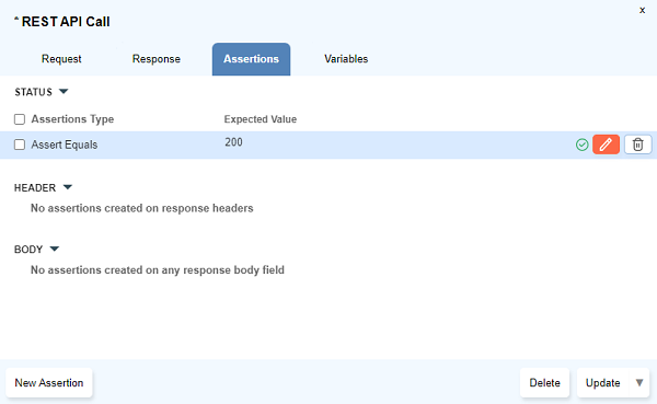 Assertionstab by clicking on theNew Assertionbutton at the bottom. - An assertion can be edited by clicking on the