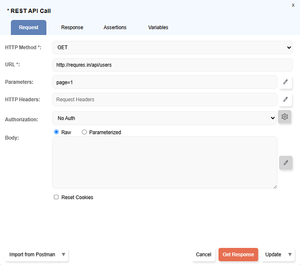 REST API Call Step in Flowcharts allows calling and verifying REST API calls.