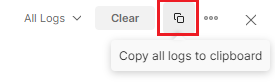 Copy all logs to clipboardbutton to copy the log from the console.
