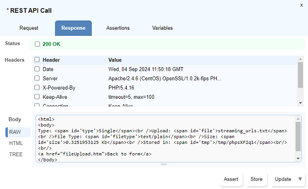 Get Responsebutton. - You will get the following result after the file upload, the response may differ depending on the web application