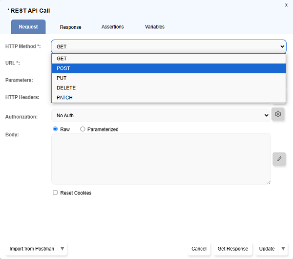 REST API Calldialog by clicking on theAdd Stepdrop down menu. - Select the POST from