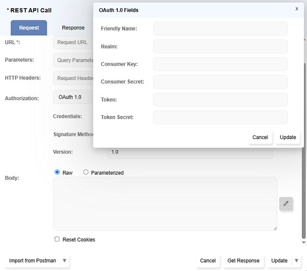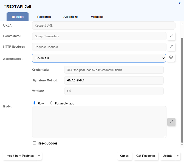 Choose OAuth 1.0 from the Authorization dropdown.