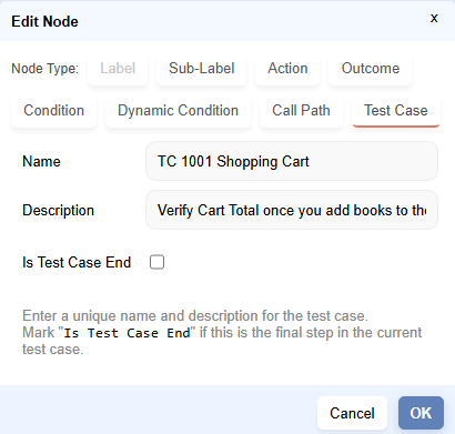 Is Test Case End?checkbox is not checked, it is treated as theTest Case Startnode.