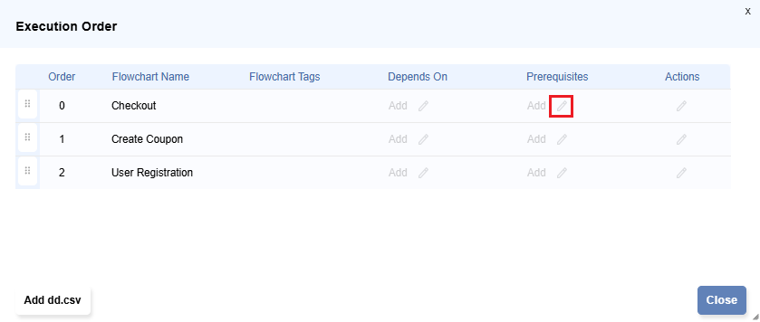 Execution Orderdialog, Click onPrerequisitesnear a flowchartCheckout.