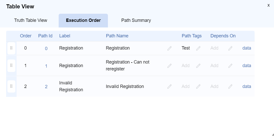 - Execution Order specifies the order in which paths are triggered for execution.