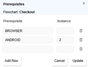 For example, in the case of flowchart Create Coupon, one instance ofchromeand 2 instances offirefoxare specified in prerequisites.