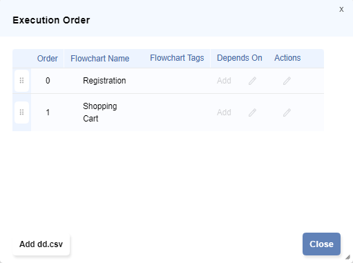 - Execution Order specifies the order in which flowcharts are triggered for execution.