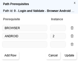 For example, in the case of path Browser Flow chrome and firefox, one instance ofchromeand 2 instances offirefoxare specified in prerequisites.