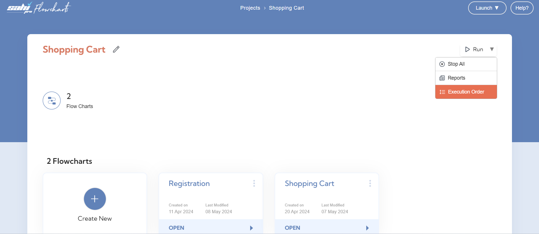 Flowcharts can be run at the Path, Flowchart or Project level.