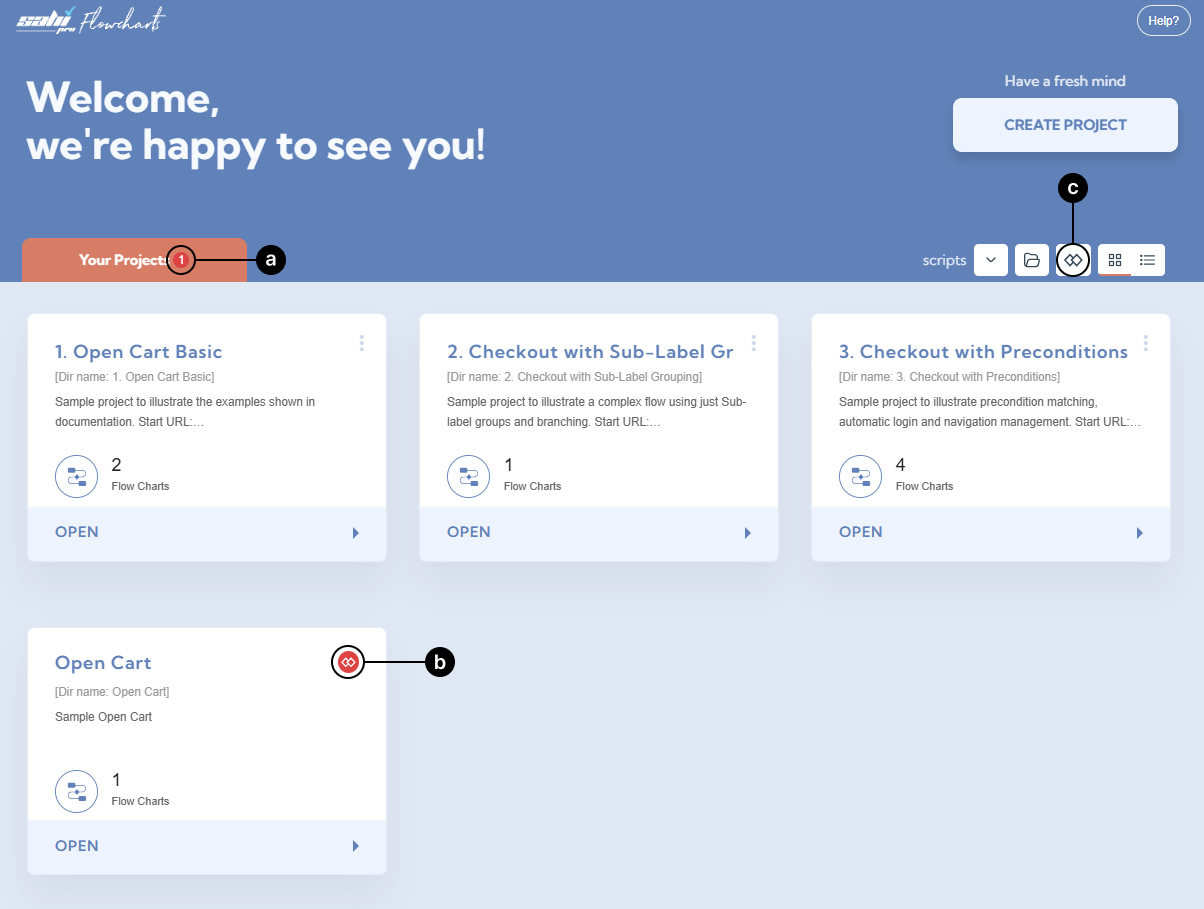 flowchartsdatafolder from the Flowcharts UI by clicking on the folder icon on the Projects page. -