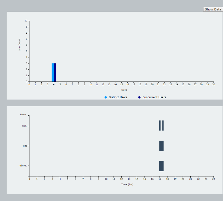 Light Blue colored bar: Displays distinct users count. Dark Blue colored bar: Displays concurrent users count.