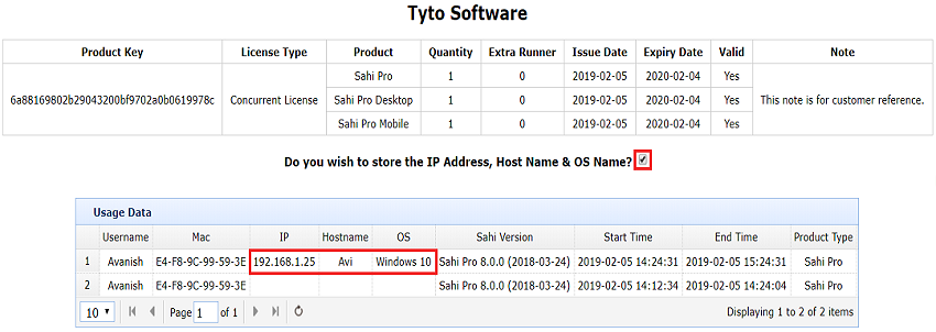 - The below images shows the list of Sahi Pro users who procured license from Sahi License Hub successfully.