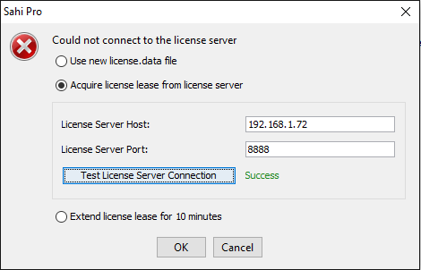 - When Sahi Pro is started, a prompt will appear if invalid/expired license.data file is added or if wrong license server configurations are added in