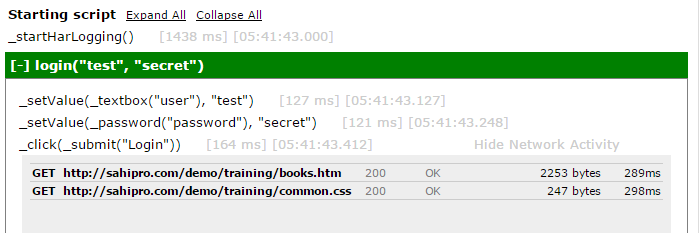 HTTP request response information summaries can be captured during playback. (HAR refers to HTTP ARchive format of storing request response information)If enabled, a log step may look like this: