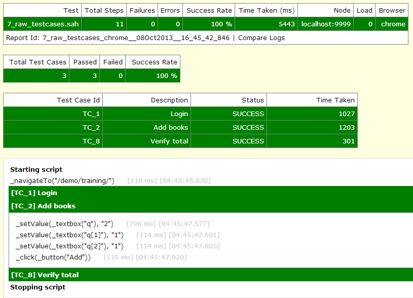 For the above script, the following message will be displayed in script report: