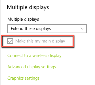 - Scroll to the bottom of the page and do check at Make this my main display.