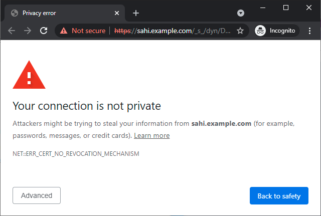 NET::ERR_CERT_NO_REVOCATION_MECHANISM.