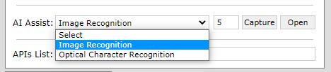 Select Image Recognition from AI Assist dropdown. If needed, input the required delay (in seconds) before capturing. Press the