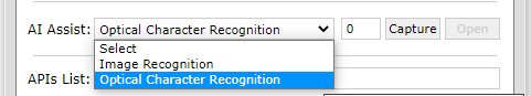 Select Optical Character Recognition from AI Assist dropdown. If needed, input required delay (in seconds) before capturing. Press the