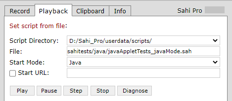 - For script playback, in Controller Playback tab, select Start Mode as "Java" and click "Play".