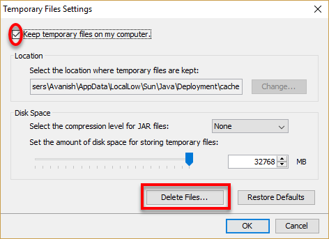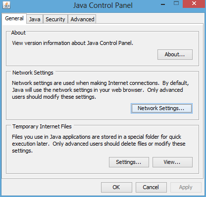 - Clear Java cache by deleting Temporary Files through the Java Control Panel.