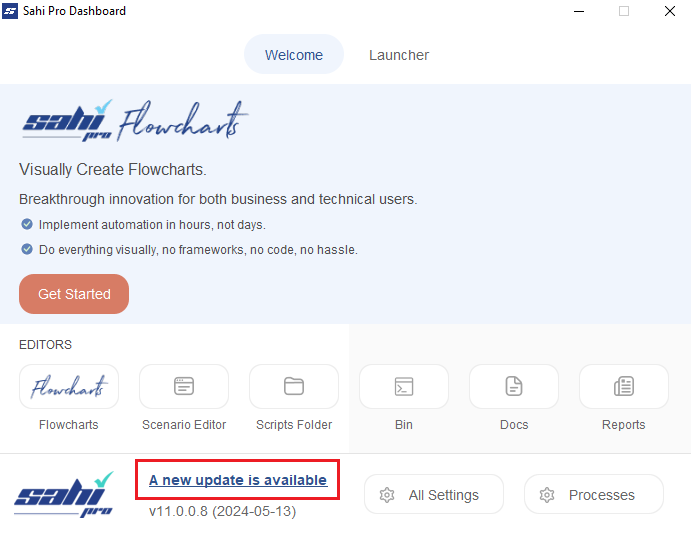 Or, Launch theSahi Prodashboard and click onA new update is available. - On the