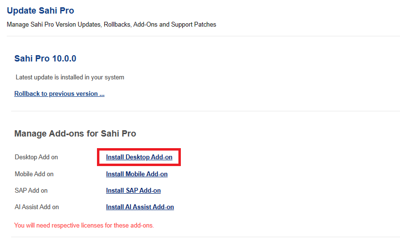 Upgrade Sahi Pro Desktop Add-on