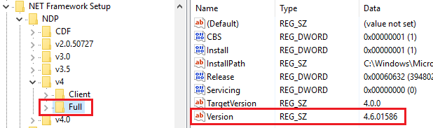• In the Registry Editor, open the following subkey: HKEY_LOCAL_MACHINE\SOFTWARE\Microsoft\NET Framework Setup\NDP\v4\Full