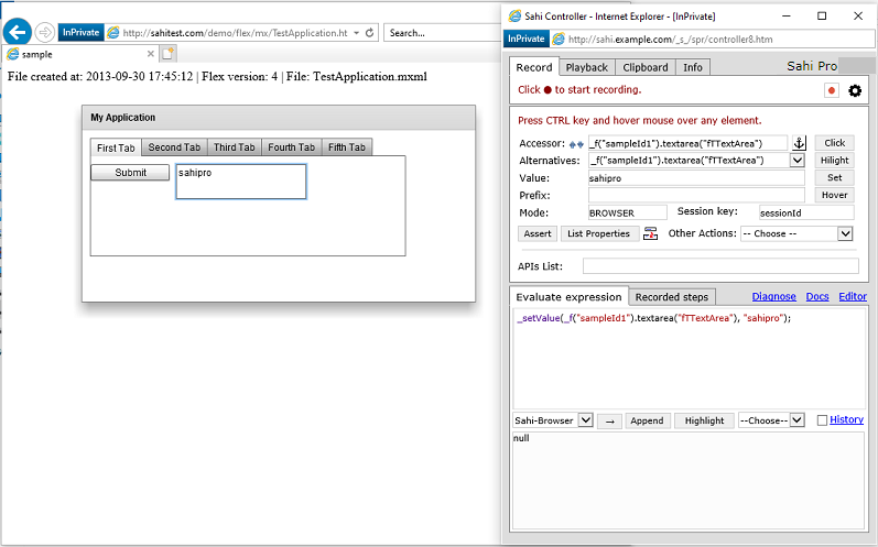 Sahi's Controller window will popup. You can now start recording your Flex application.