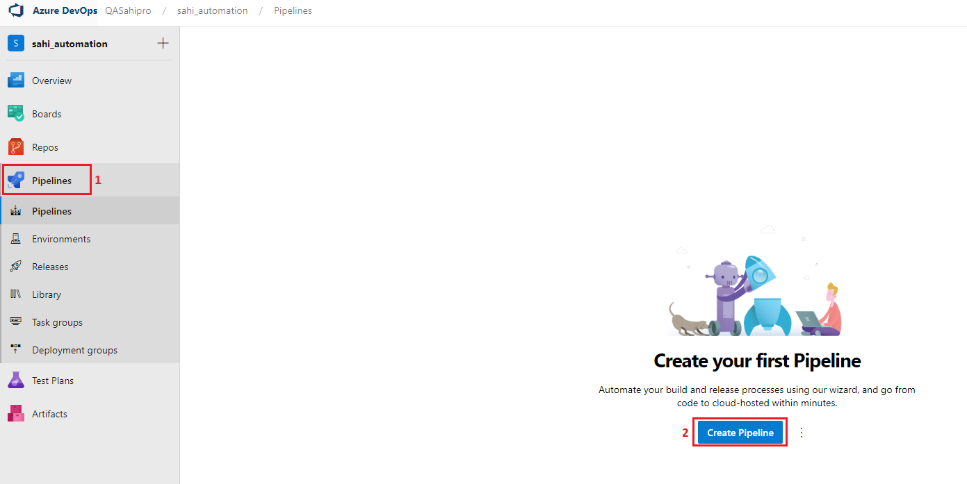 - Go to Pipelines, and then select Create pipeline.