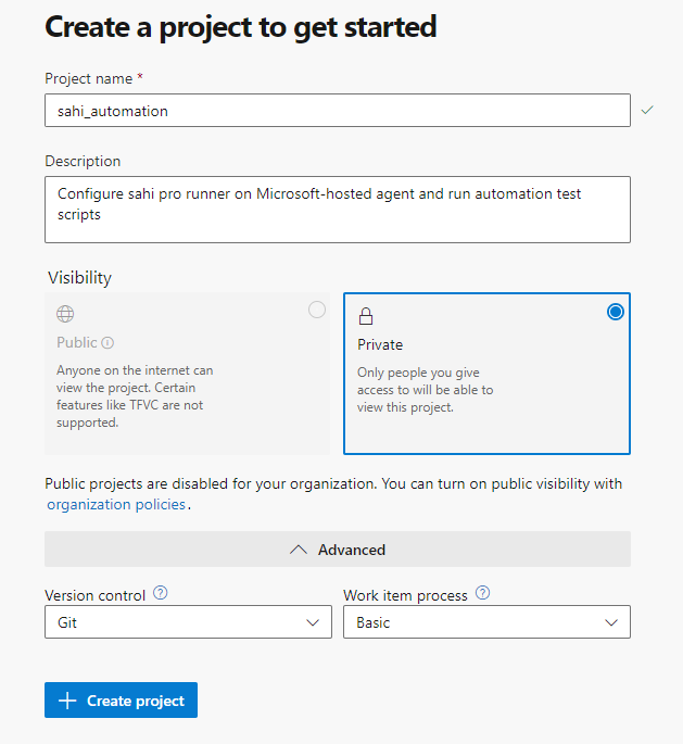 - Create Project with Basic Process in Azure DevOps