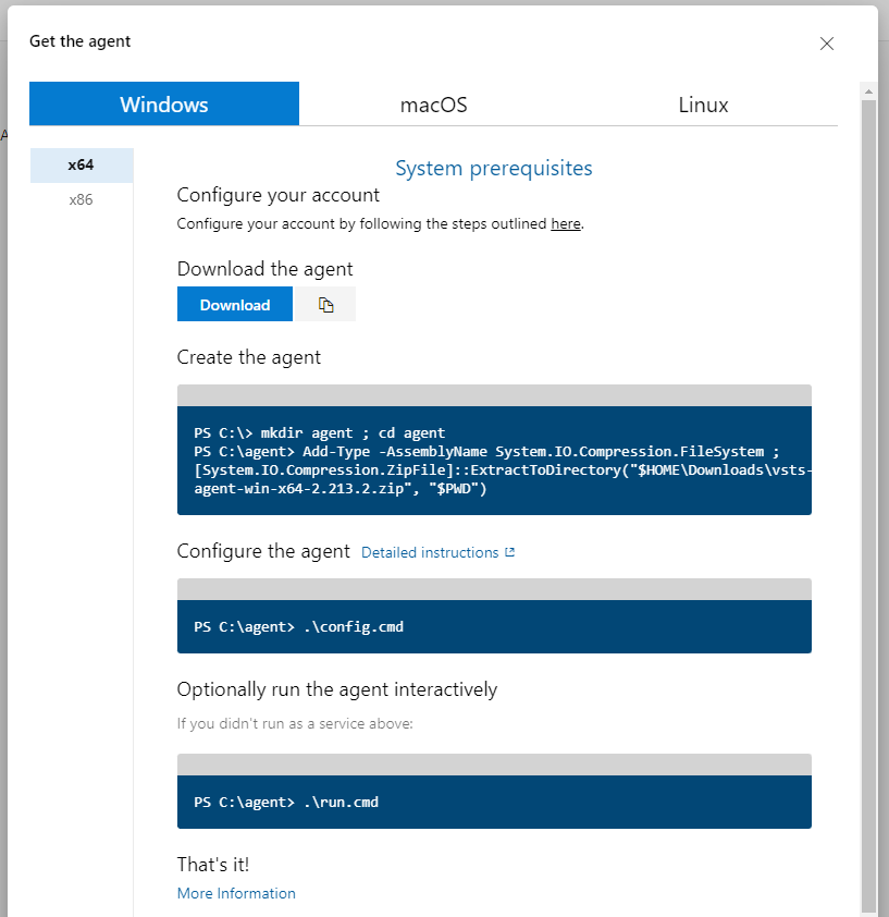 - On the Get the agent dialog box, choose Windows.